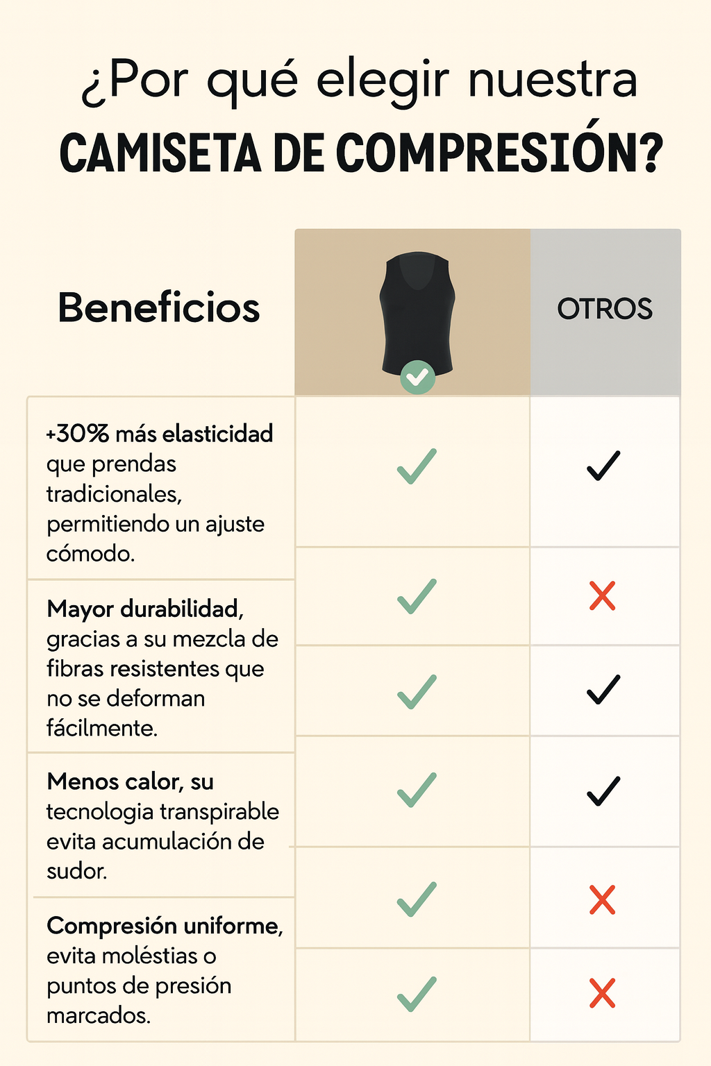 +30% más elasticidad que prendas tradicionales, permitiendo un ajuste cómodo.