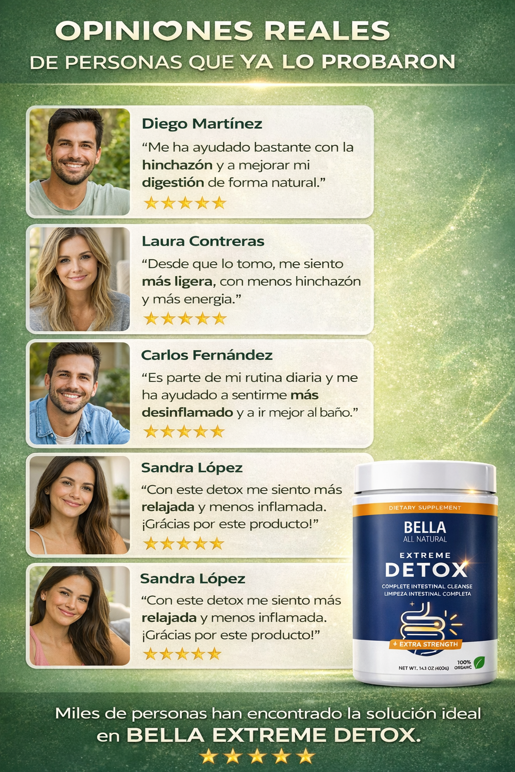 ✅ 92% de nuestros clientes reportan sentirse menos inflamados tras usar Bella Detox de forma constante.