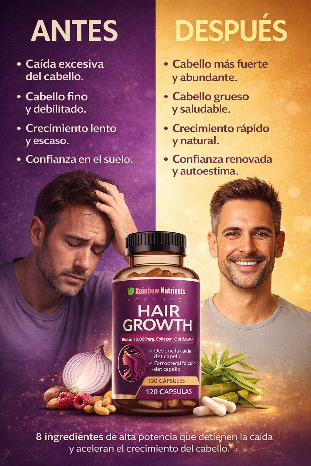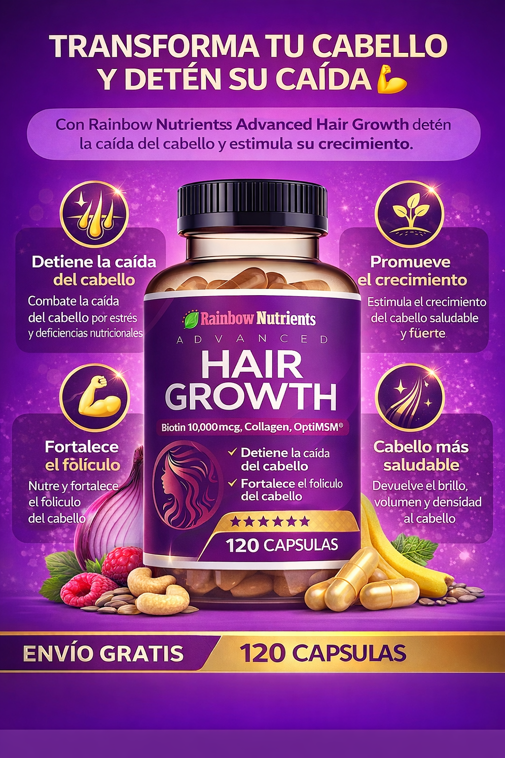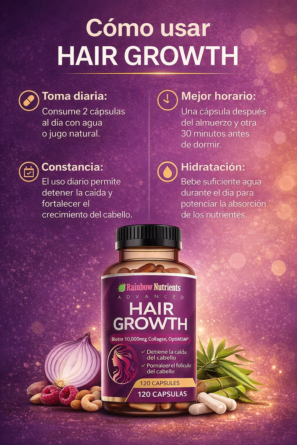 Una fórmula avanzada con biotina de alta potencia y colágeno, diseñada para nutrir tu cabello desde adentro y mejorar su apariencia con el uso constante.