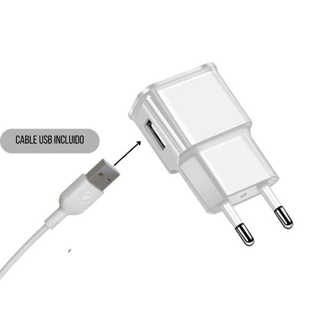 La esfera cuenta con un cable USB, el cual puedes conectar en cualquier puerto USB de un cargador como se refleja en la imagen: