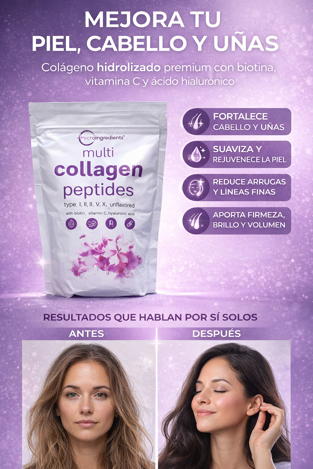 La combinación perfecta de mde colágeno, y acido hialuronico biotina🍓