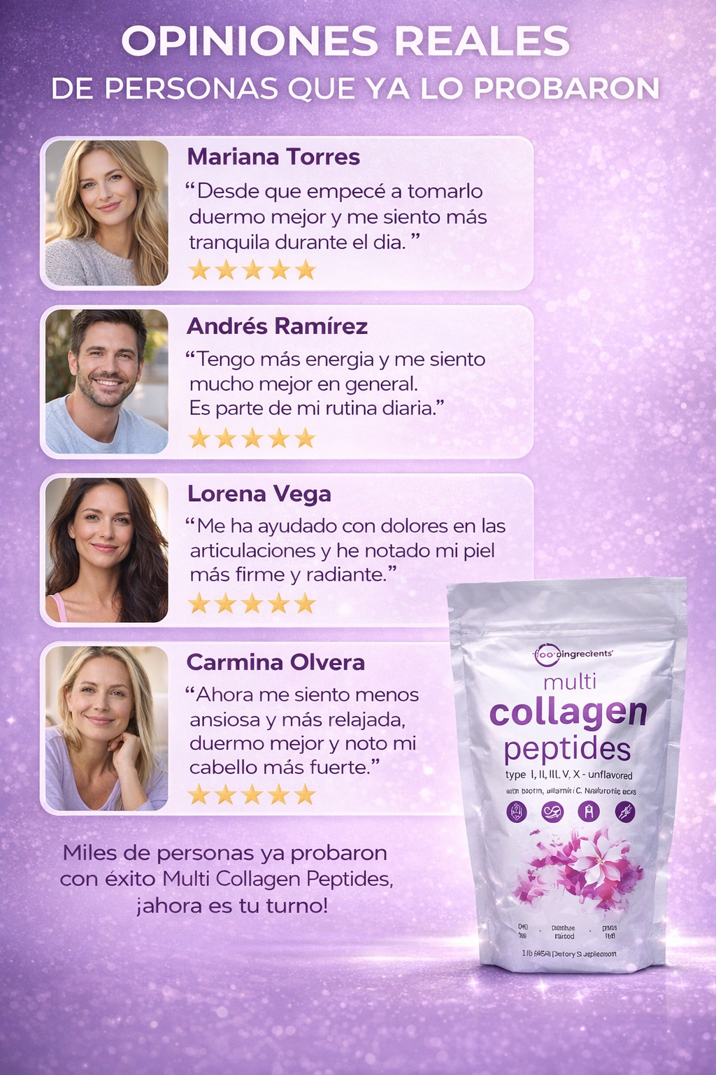 ✅ 90% afirman sentir menos dolores articulares luego de consumir multi collagen peptides.