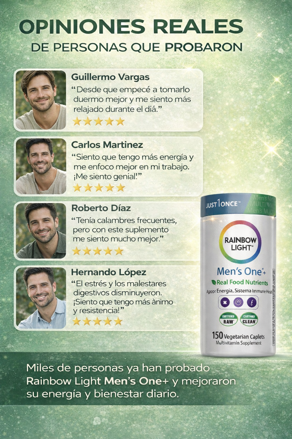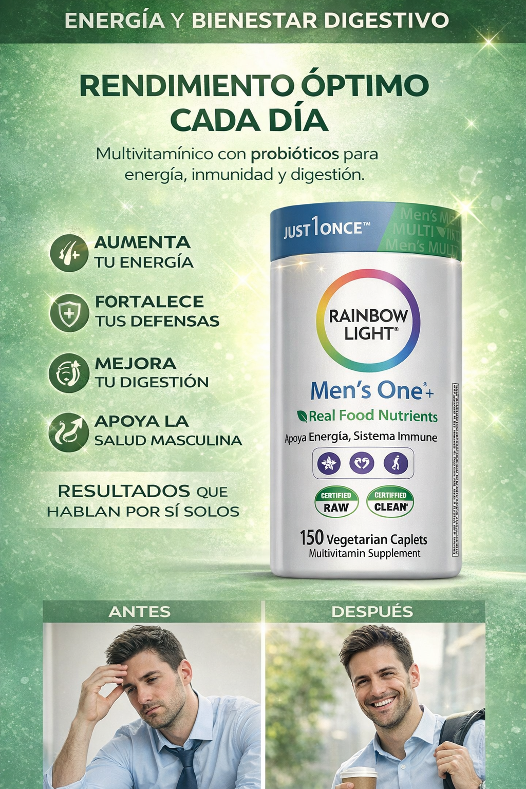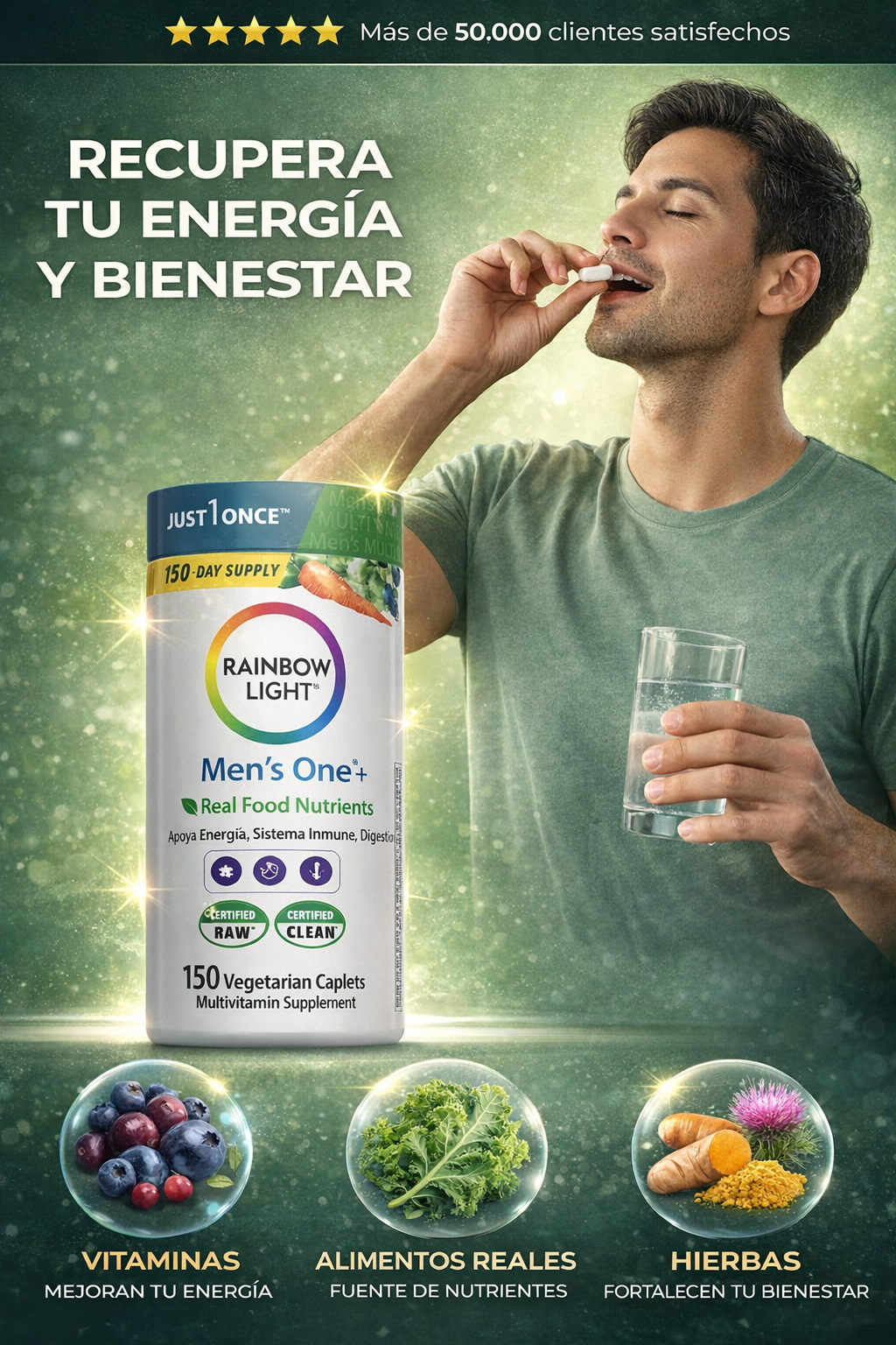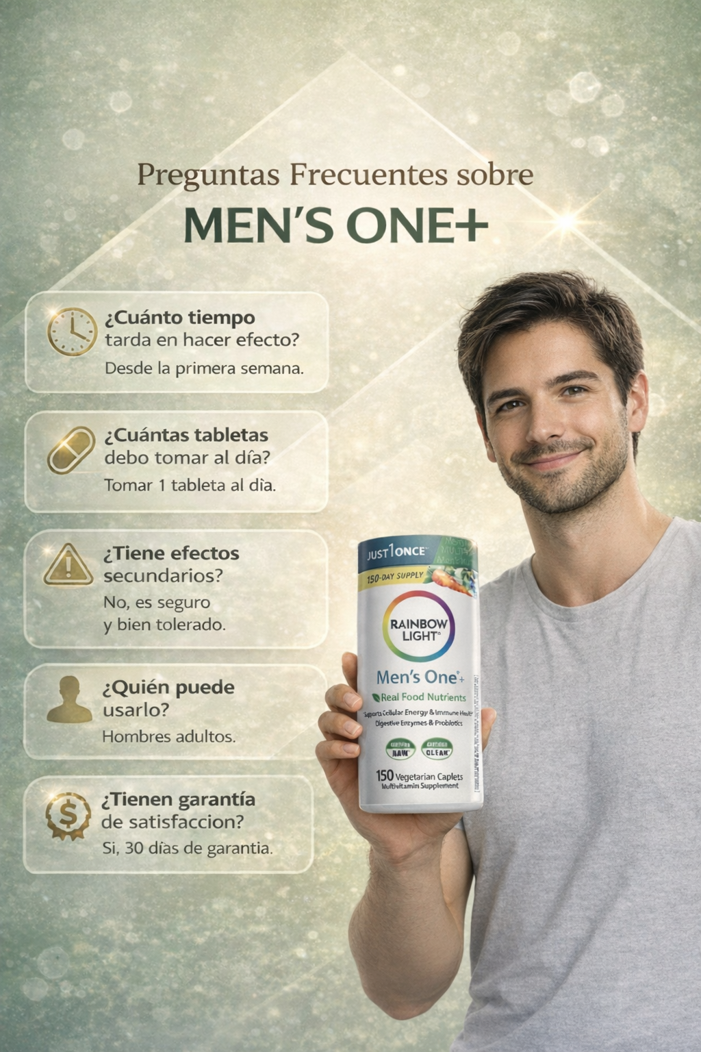 Men’s One+ aporta vitaminas, minerales y nutrientes derivados de alimentos reales que apoyan la energía celular y el rendimiento diario.